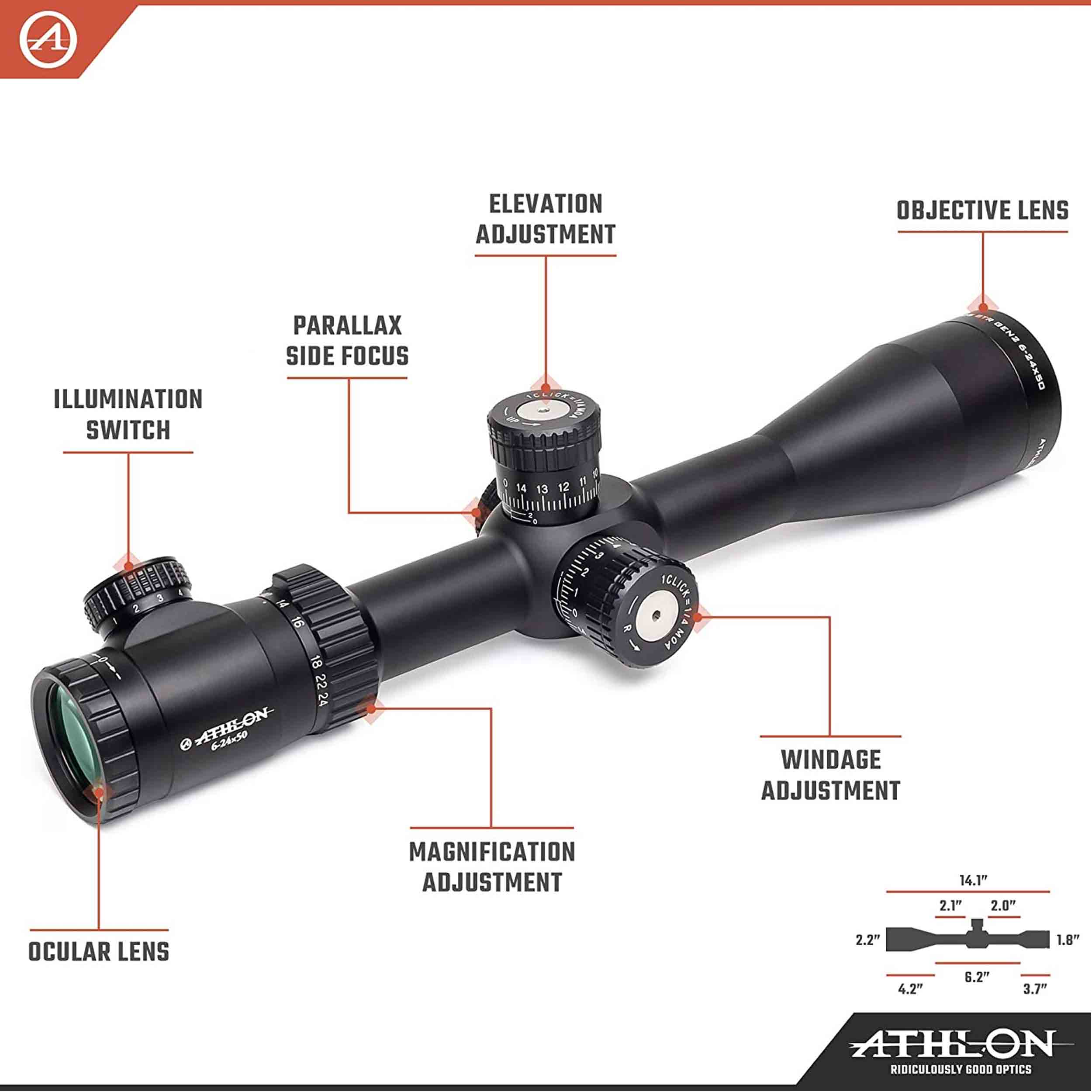 دوربین تفنگ گلوله زنی اتلون APMR 6-24X50 IR یکی از حرفه ای ترین محصولات در رقابت با مدل های خوش قیمت کمپانی ورتکس است که به دلیل دارا بودن قابلیت های گسترده در کنار قیمت رقابتی و پایین تر از این برند مشهور، به صورت گسترده در بازار های جهانی و بین المللی مورد توجه قرار گرفته است.