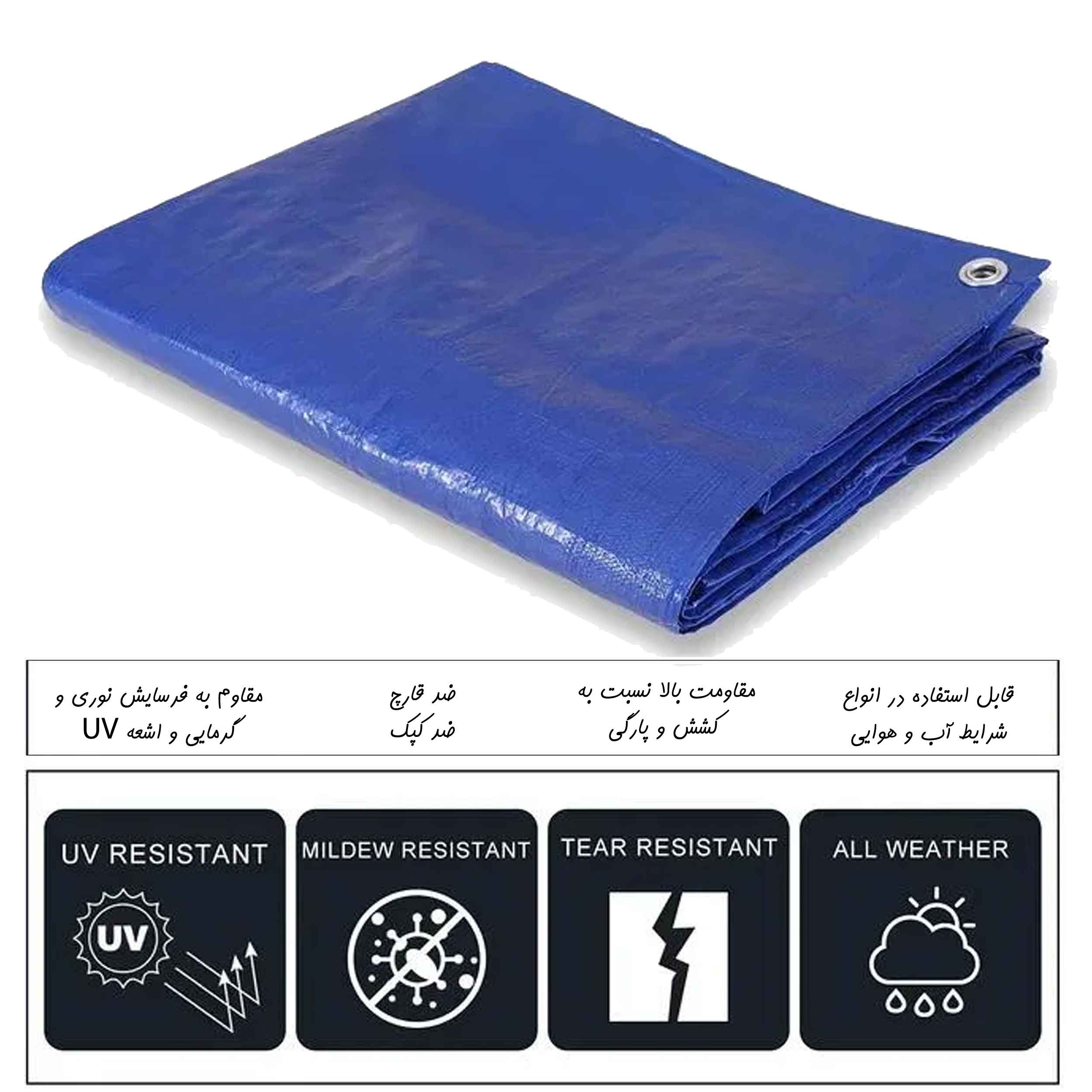 این زیرانداز از جنس بزرنت ضخیم و مقاوم به رطوبت بوده و دارای حلقه های اتصال به چادر و یا میخ های زمینی است.