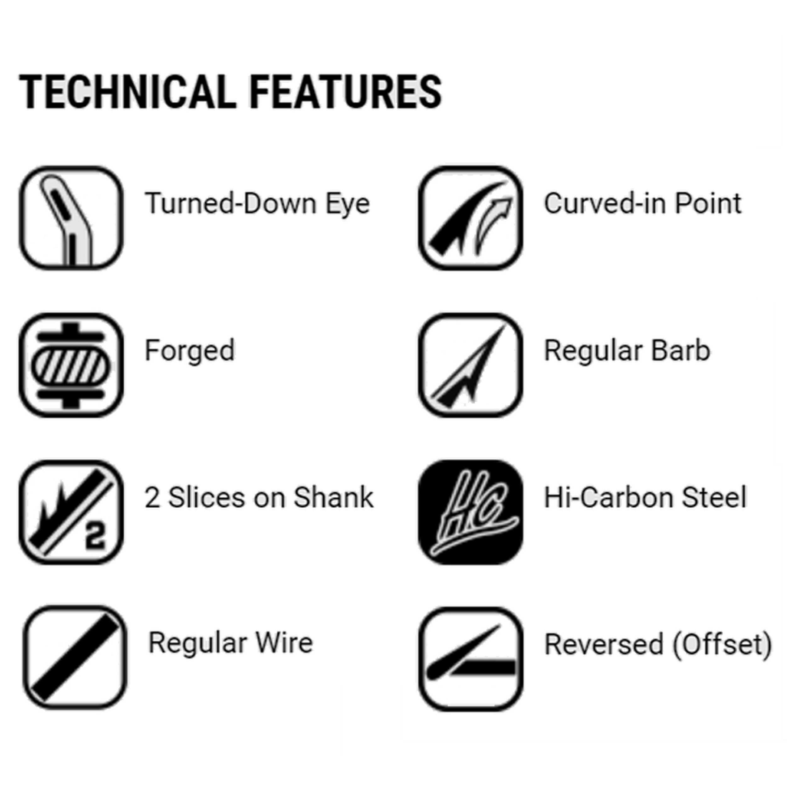 به همین دلیل به این مجموعه قلاب های وی ام سی “طعمه گیر های بدون خطا” نیز میگویند. در طراحی این مدل حلقه چشمی اصلی رو به داخل بوده تا قدرت مانور قلاب طعمه دار بهبود پیدا کند و صید را افزایش دهد.
