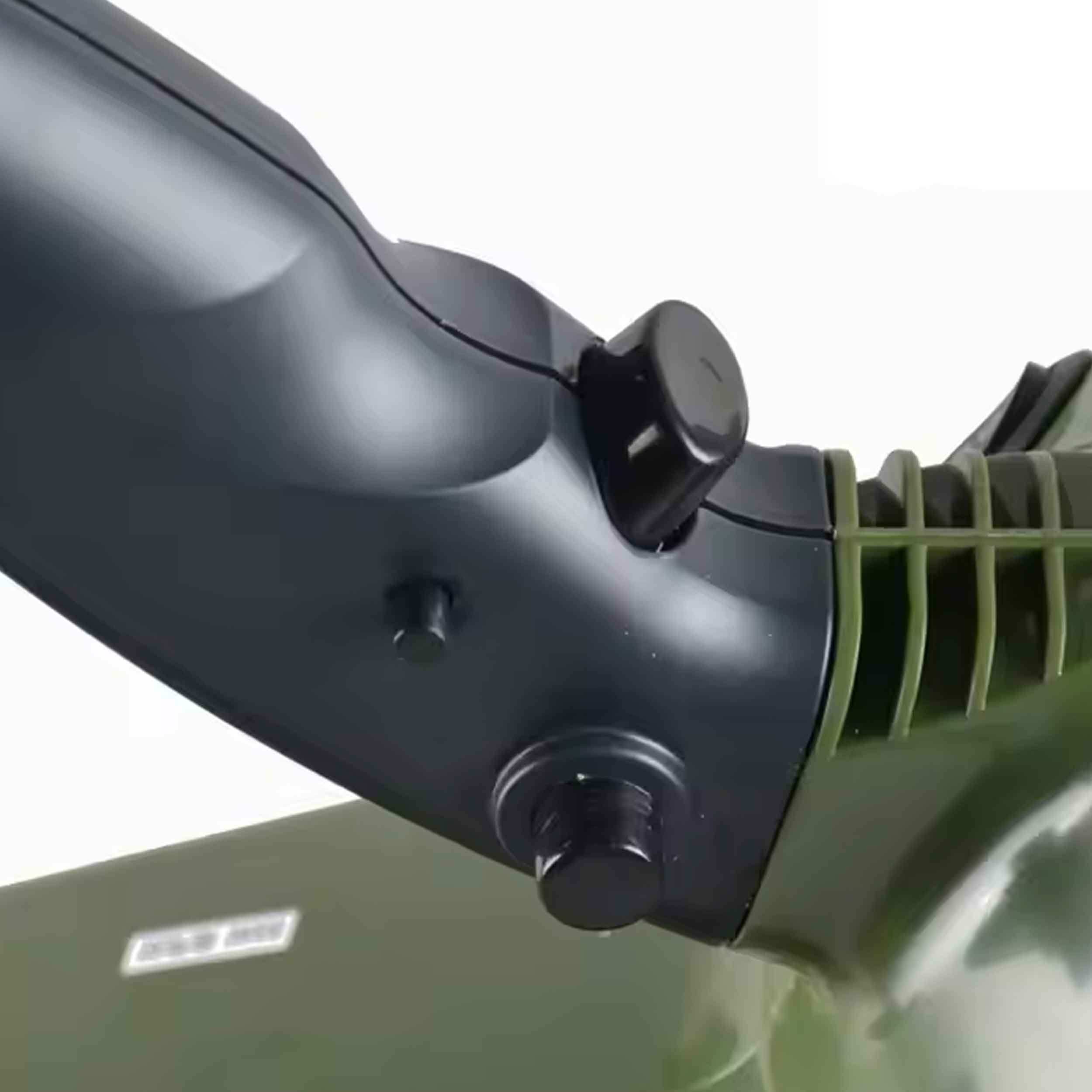 بدنه نورافکن مقاومت بالایی در برابر ضربه و شرایط سخت محیطی دارد. رنگ سبز ارتشی و مشکی آن جلوهای حرفهای و مناسب محیطهای بیرونی به دستگاه داده است. دستهی ارگونومیک باعث میشود هنگام استفاده طولانیمدت، دست خسته نشود.