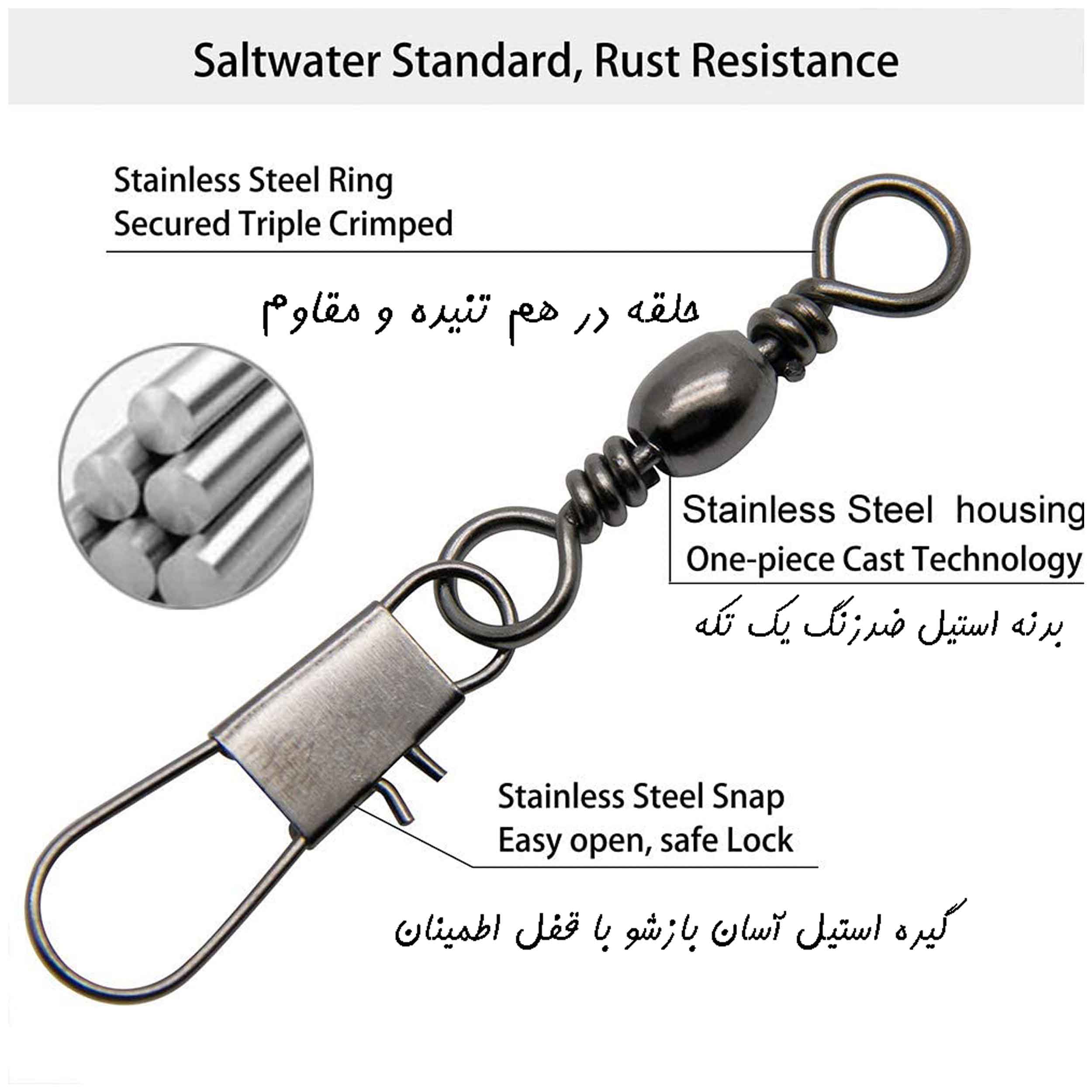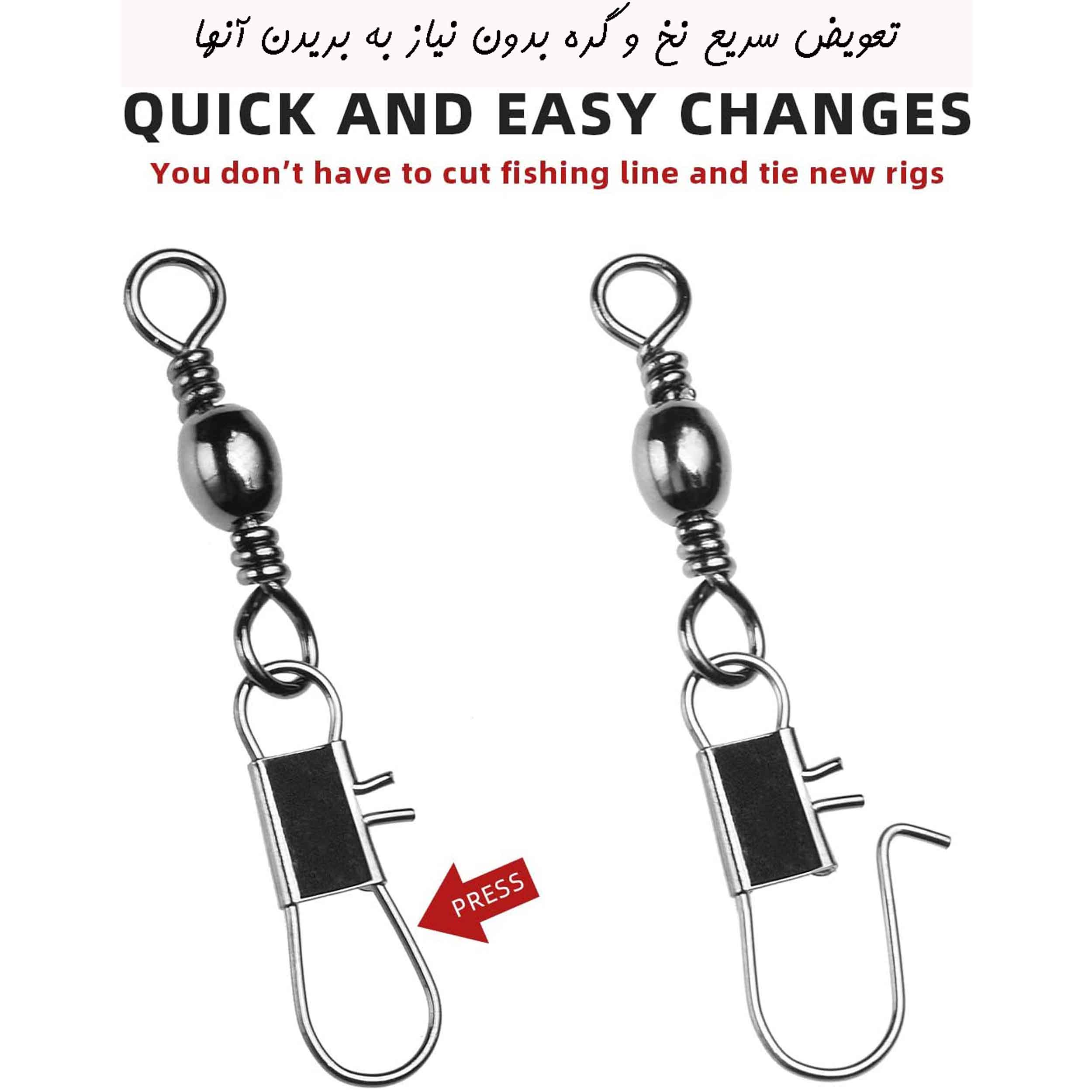 بدنه با گیره های داخلی درهم تنیده شده و امکان کوئیک چنج (بازکردن گیره و خارج کردن گره نخ ماهیگیری بدون نیاز به بریدن نخ و گره و ریسه) به راحتی میسر است.