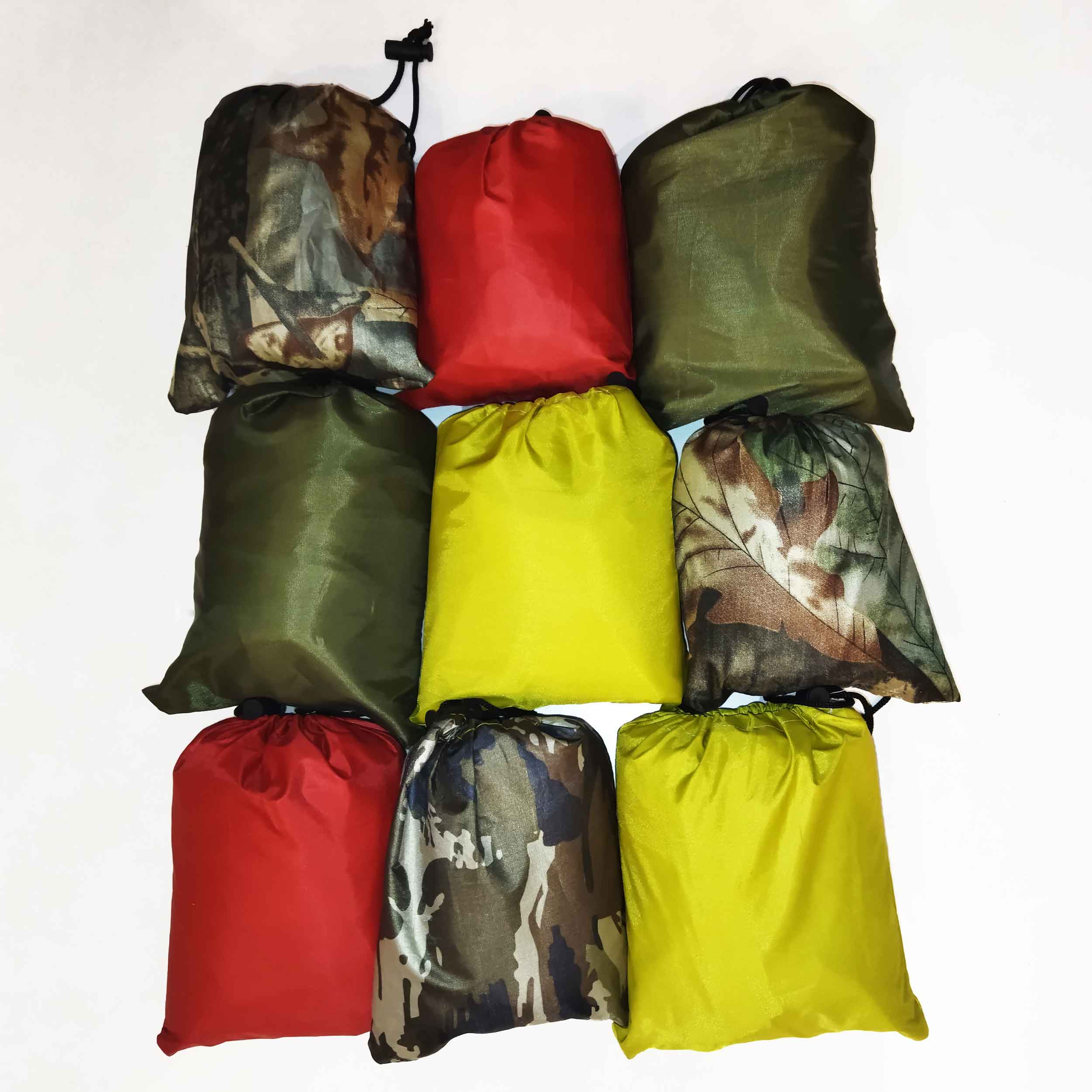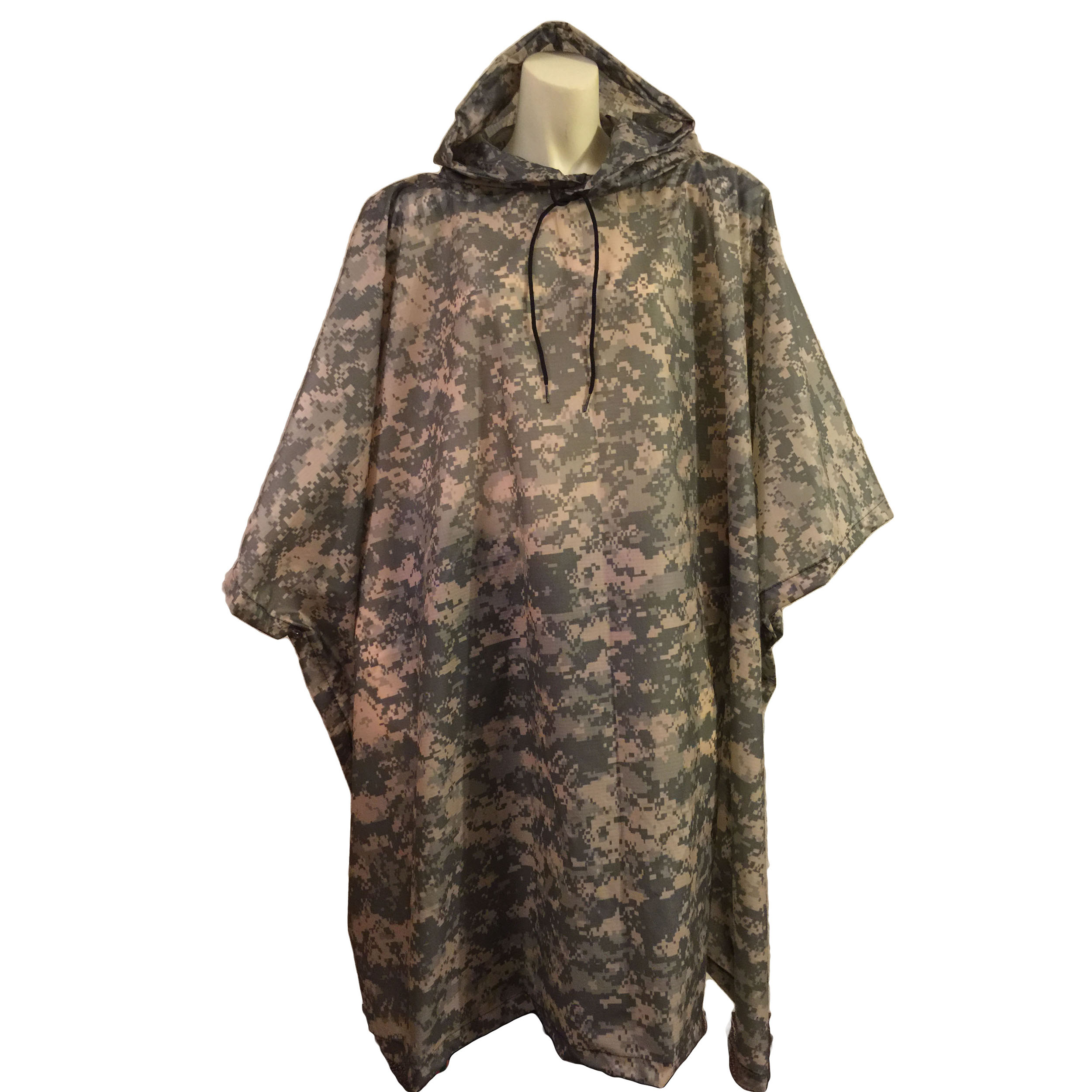 جنس این پانچو مشتی از نایلون ضدآب و در تنوع رنگی ساده و طرح دار استتار و برگ درختی موجود است.