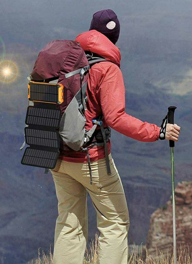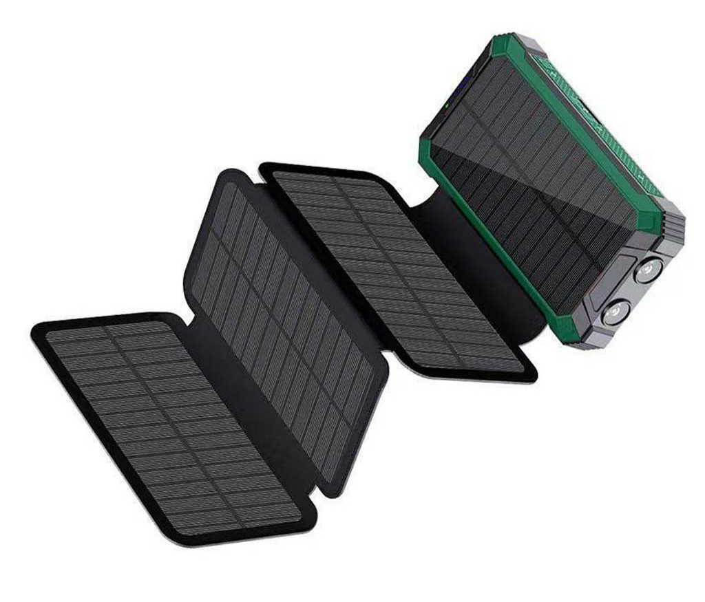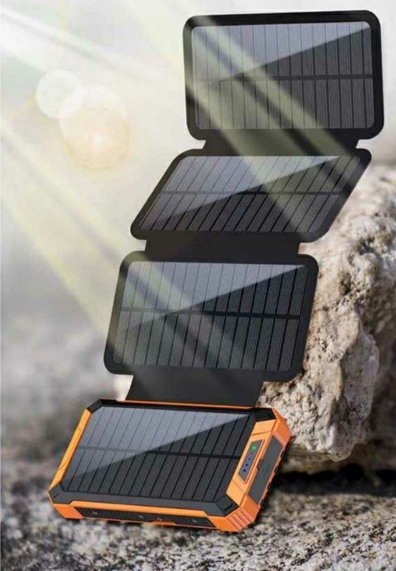 شارژر خورشیدی با 4 پنل خورشیدی تاشو انجام میشود . جریان شارژ ورودی تا 1200 میلی متر در ساعت است . این یعنی 4 تا 5 برابر سریعتر از شارژرهای خورشیدی معمولی.