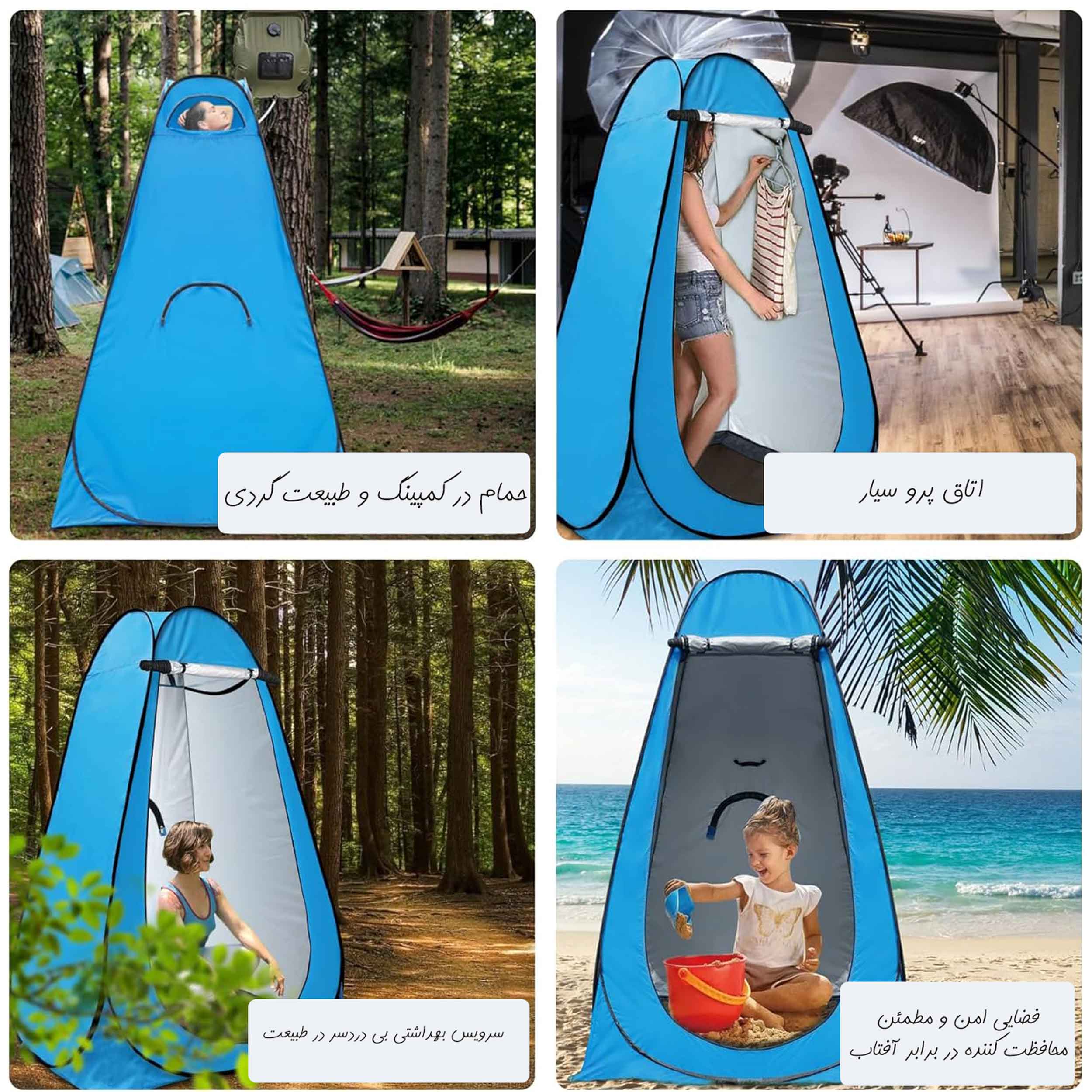 ابعاد داخلی چادر توالت صحرایی به گونهای طراحی شده که یک نفر بهراحتی میتواند در حالت ایستاده داخل آن قرار بگیرد. همین ویژگی باعث میشود این چادر گزینهای مناسب برای کاربریهای متنوع باشد؛ مثل استفاده به عنوان توالت صحرایی، دوش قابل حمل یا حتی اتاق پرو در سفر و ساحل.