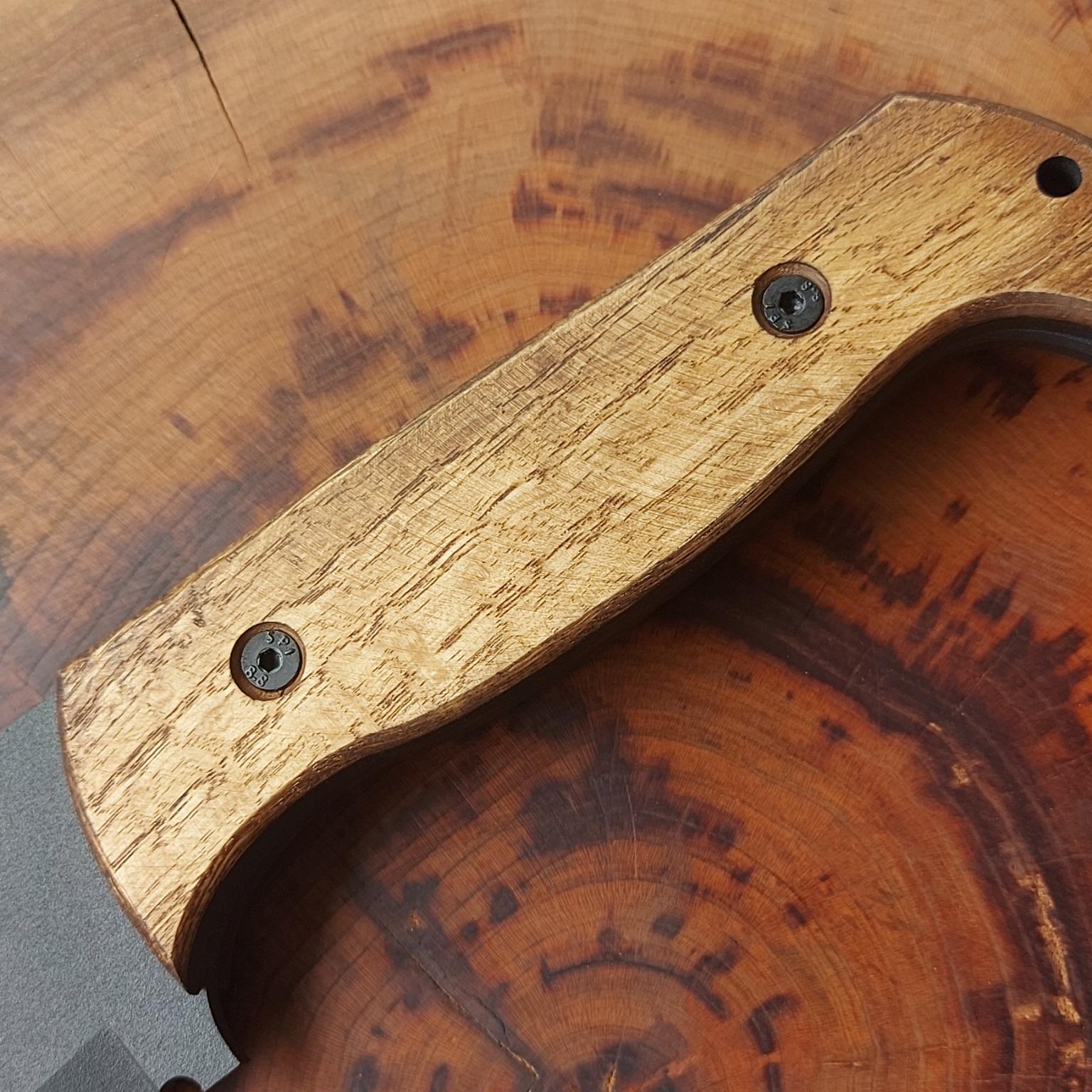 بدنه اصلی چاقو شکاری فولادی توماهاوک به صورت یک تکه ساخته شده است تا بیشترین مقاومت را داشته باشد و دسته اصلی این محصول از جنس چوب گردو درجه یک ساخته ، و بسیار ارگونومیک و خوش دست طراحی شده است. دو بخش و طرفین دسته کارد شکاری توماهاوک با سه عدد پیچ های محکم فولادی به هم متصل شده اند که در صورت نیاز میتوان با کمک آچار آلن آنها را باز و بسته کرد.