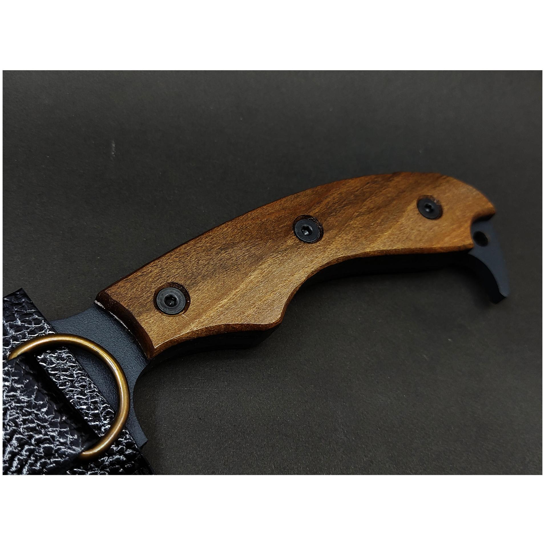 چاقو و ساطور شکاری توماهاوک با یک غلاف از جنس چرم کاملا طبیعی که به بهترین وجه از تیغه کارد محافظت میکند ارائه میشود. با کمک این غلاف دست دوز میتوان از عدم سقوط و گم شدن این وسیله مطمئن بود.