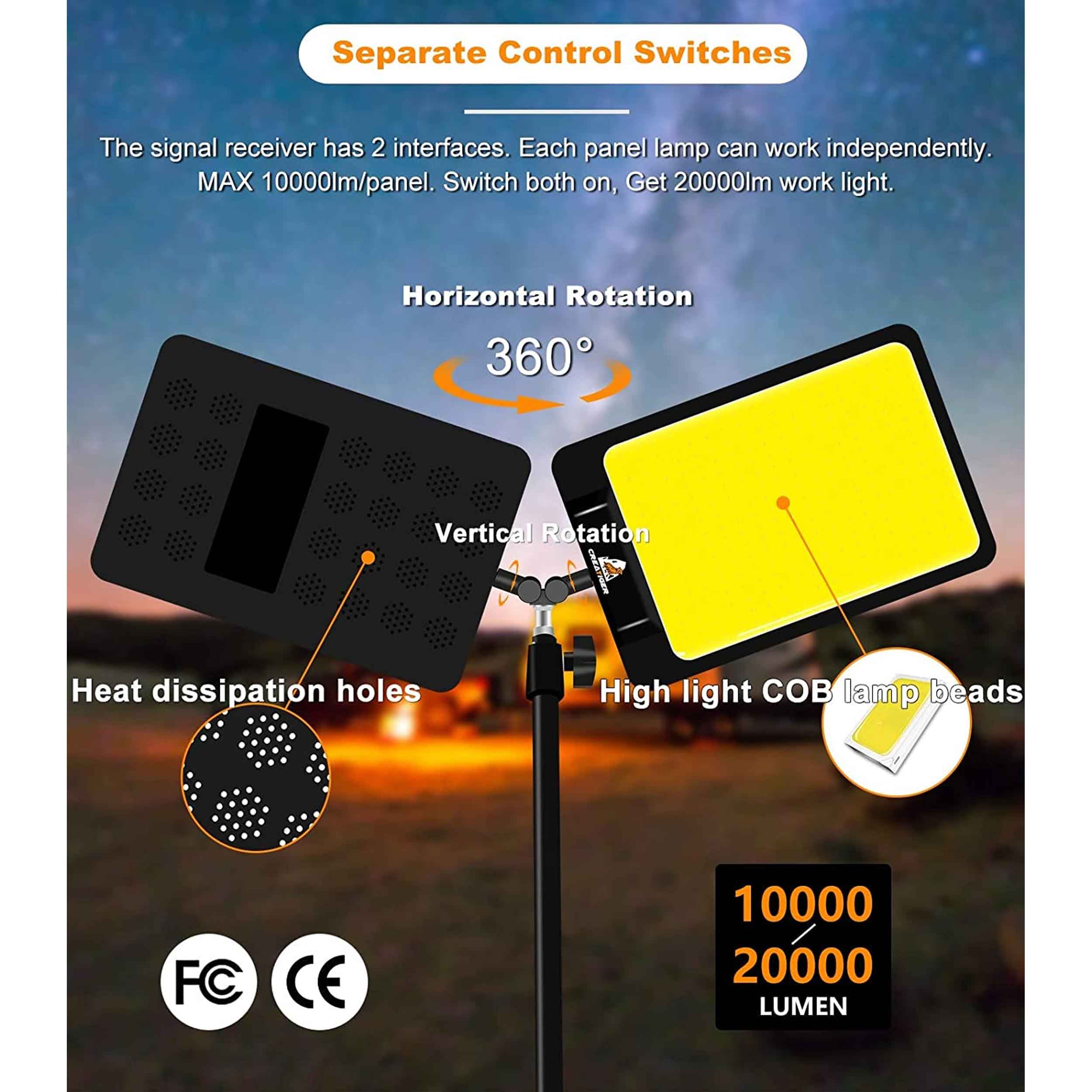 چراغ کمپینگ توبیز TBS DESIGN BVT03W دارای دو سوپر پنل بزرگ بوده که هر دو آنها با ابعاد 22×13 سانتی متر میزان نور بسیار مطلوبی ارائه می دهند. همچنین هر دو آنها هم از نظر میزان نور تابشی و هم از نظر زاویه تابش و قرارگیری ، کاملا از یکدیگر مستقل و قابل تنظیم هستند. هر کدام از آنها 180 درجه زاویه نور داشته و با وجود دو عدد، به راحتی روشنایی 360 درجه در اختیار افراد قرار می گیرد. پره های چرخان این چراغ به صورت کاملا مقاوم به بدنه نصب شده اند و با چرخش مکرر و با استفاده های دائمی نیز مقاومت و ایستایی خود را از دست نمی دهند.