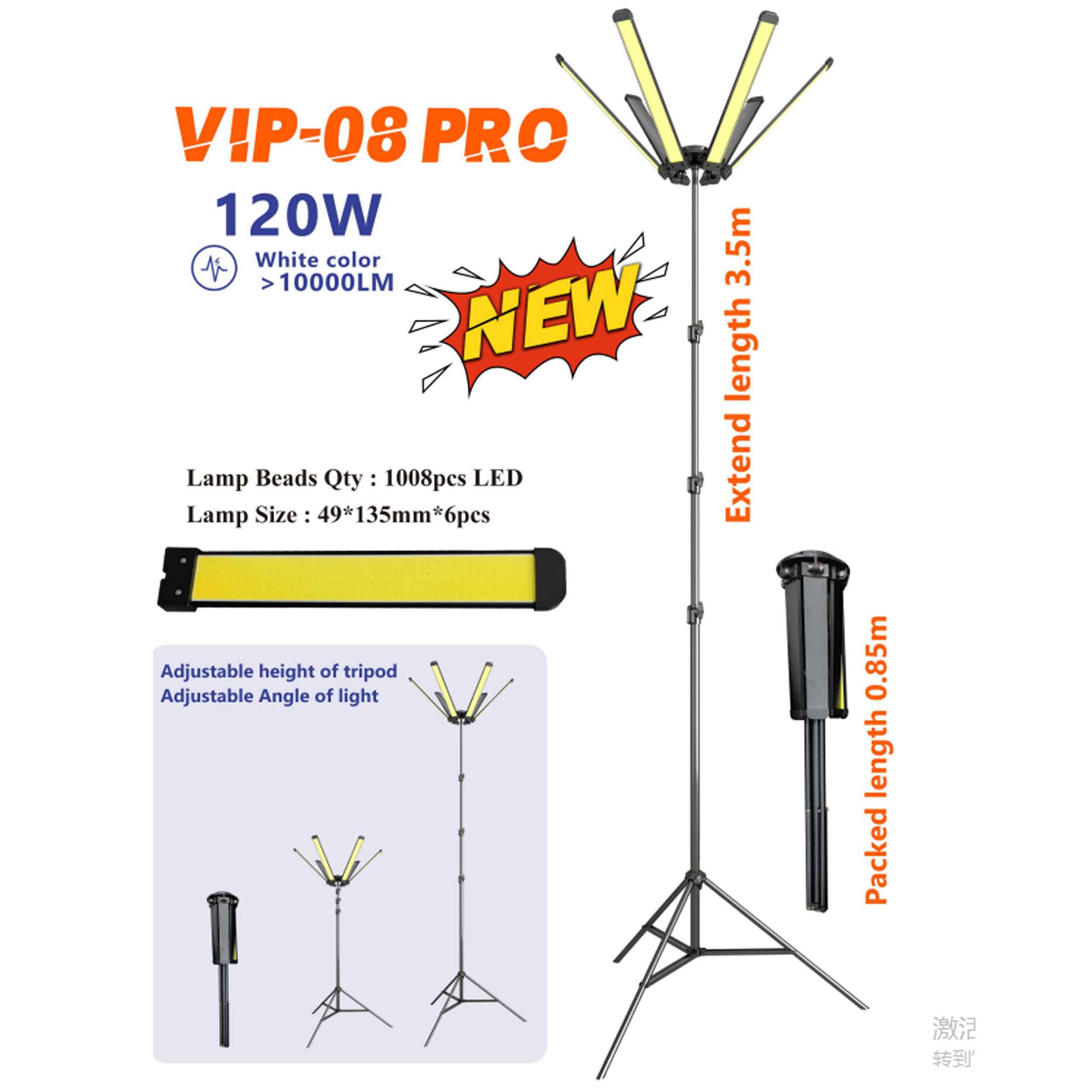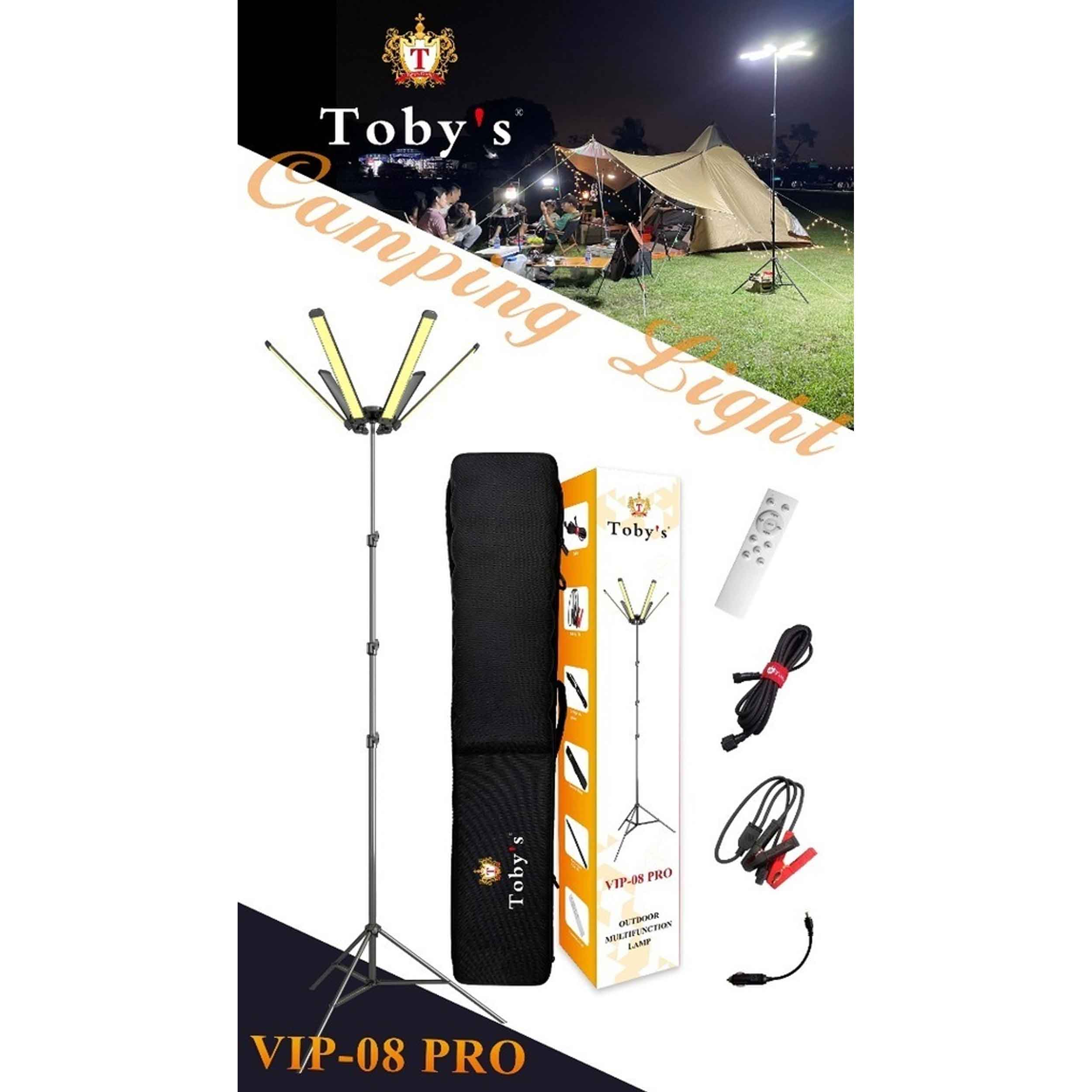 چراغ کمپینگ توبیز مدل وی آی پی 08 پرو یک محصول پر طرفدار از برند TOBY’s با بهترین امکانات و ویژگی ها و مشخصات فنی در بین لامپ های کمپ است. این محصول با پایه قابل تنظیم 3.5 متری، نور را توسط 6 عدد پنل LED بزرگ در شش جهت مختلف انتشار میدهد. ابعاد هر پنل 49×135 میلی متر است و هرکدام از آنها به صورت مستقل با هر زاویه ای قابل تنظیم تابش نور هستند.