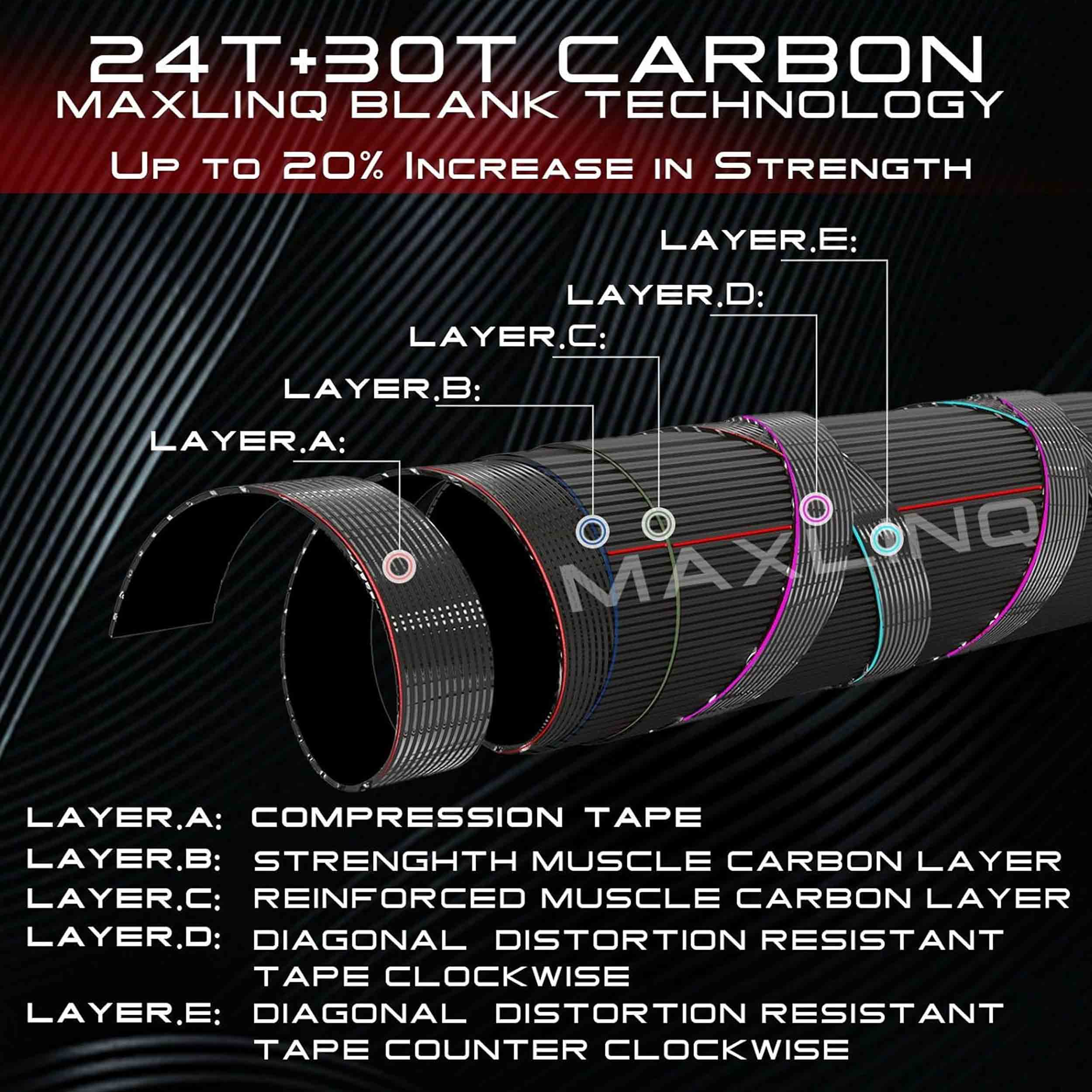 چوب ماهیگیری چهار تکه مکس کچ Maxcatch 2.70 متر از ترکیب فایبر کربن درصد بالا ساخته شده است و با استفاده از فناوری MAXLINQ Blank Technology تا 20٪ افزایش استحکام نسبت به نمونههای معمولی دارند.