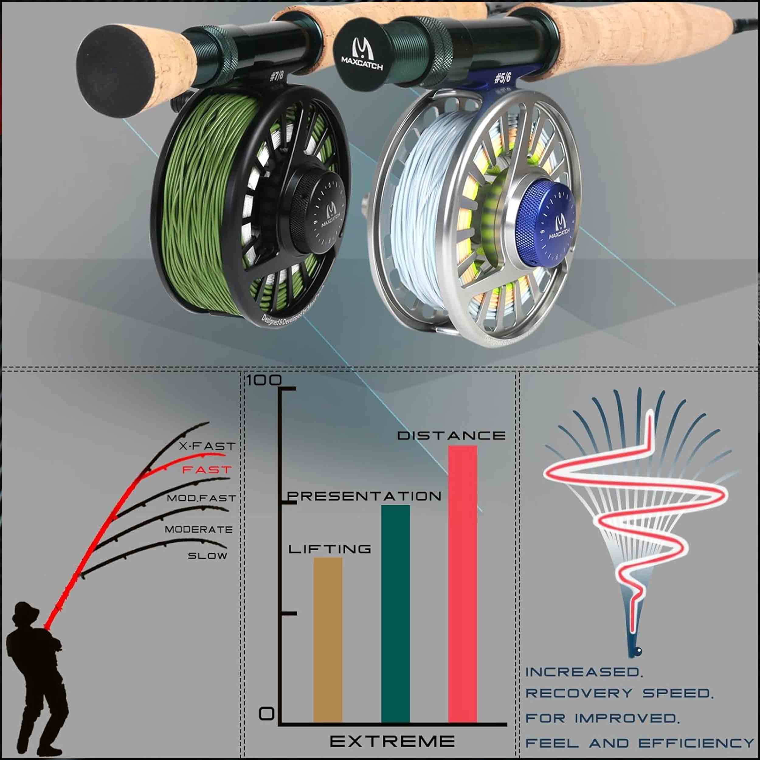 این نوع اکشن باعث میشود فقط نوک چوب خم شود، در حالی که بدنه اصلی سفت و مستحکم باقی میماند؛ این باعث می شود پرتابهای دقیقتر، قدرت بیشتر و کنترل بهتر روی ماهی داشته باشید.