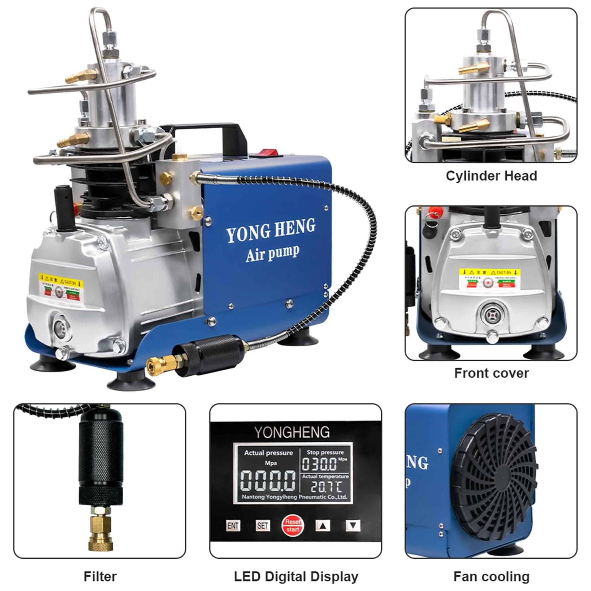 با کمک کمپرسور یانگ هنگ دیجیتال می توانید انواع تفنگ بادی PCP و کپسول های گوناگون کامپوزیت و فولادی را شارژ نمایید.
